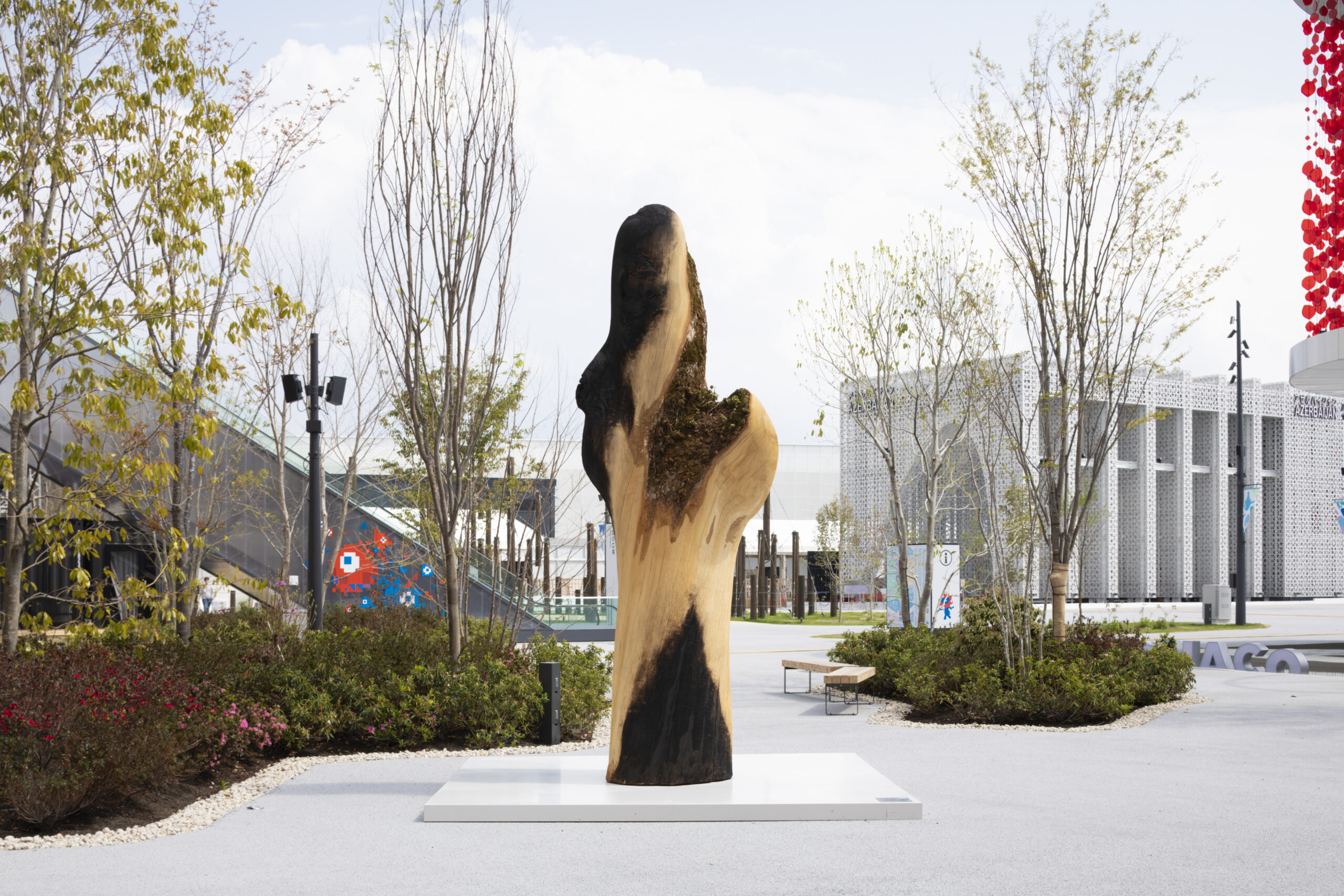 ■《WORMHOLE》 2025 年 約 390×120×100cm 木(ミズナラ) 2025 年 日本国際博覧会 出展作品
