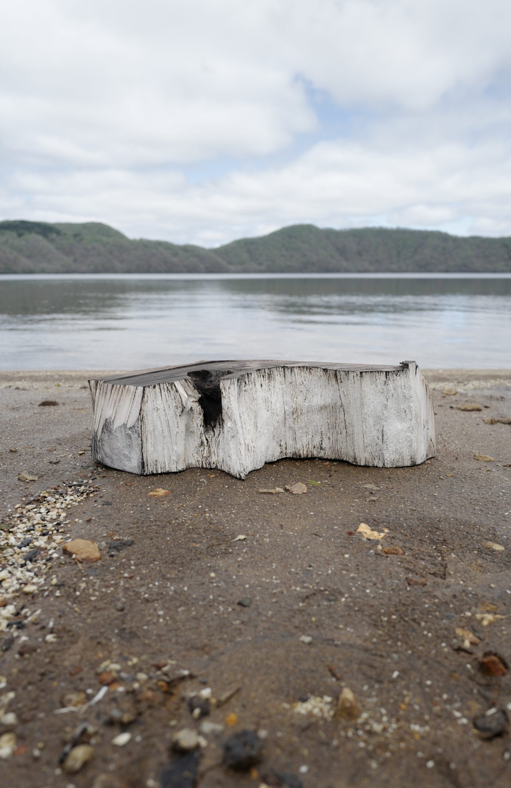 ■《GLACIER MOUNTAIN》 2024 年17.5×60×29cm 木(イチイ)に胡粉と土 撮影:国松希根太