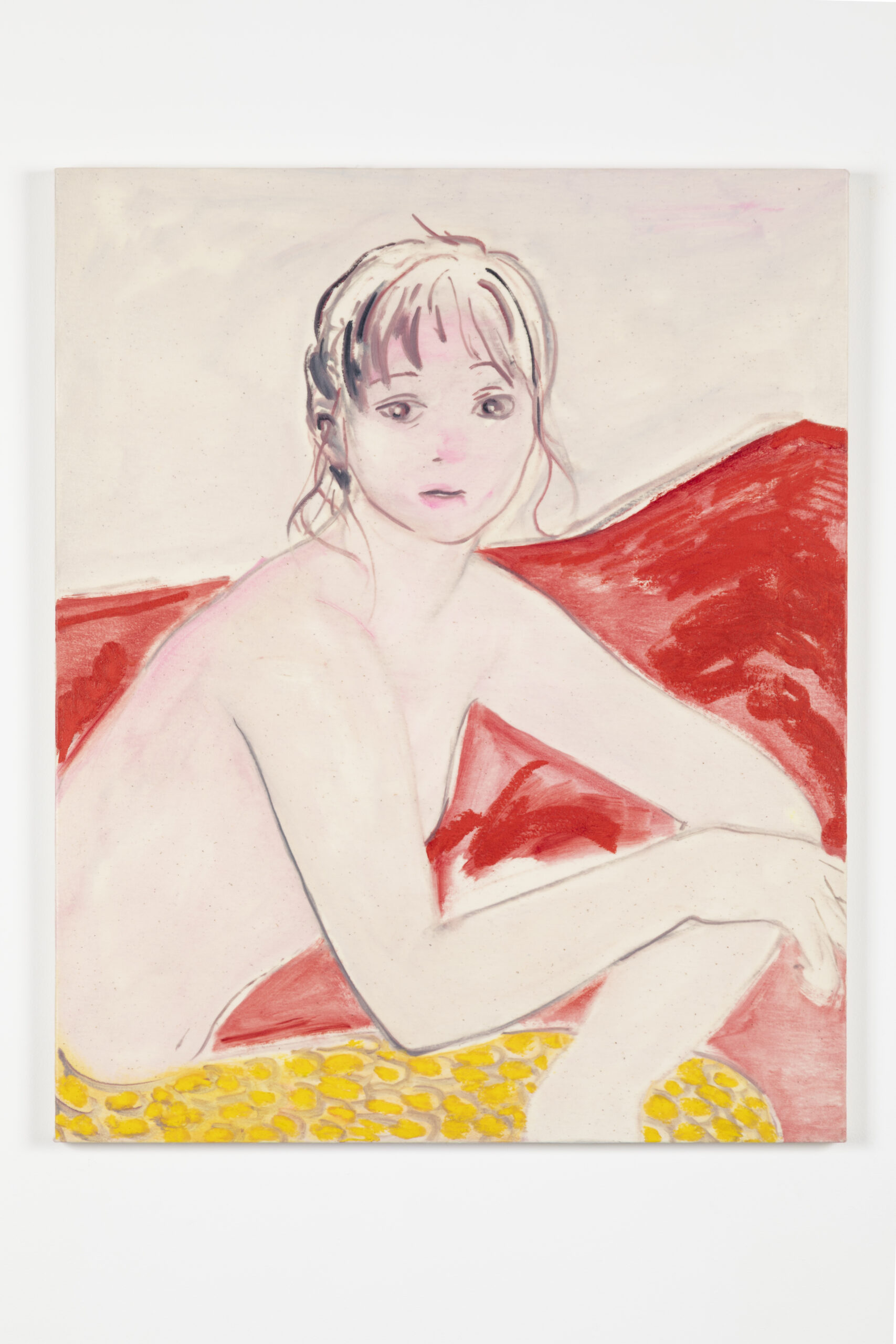 N&A Art SITEでは、2026年2月13日(金)から3月7日(土)まで、NANJO SELECTION 第8弾としてフカミエリの個展『夢は魚のようにはねている』を開催いたします。 ■開催概要 展覧会名:NANJO SELECTION vol. 8 フカミエリ『夢は魚のようにはねている』 会期:2026年2月13日(金) - 3月7日(土) 12:00-17:00 (日)(月)休 会場:N&A Art SITE(東京都目黒区上目黒1-11-6 / 東急東横線中目黒駅より徒歩5分) 主催:エヌ・アンド・エー株式会社、アートジーン合同会社 フカミは自分と世界における「こころの在りか」を起点に絵画表現を行う作家です。描かれる人や生き物、自然などを思わせる形は、記憶や夢、感情を映すように描かれ、平面に広がる豊かな色彩の揺らぎとともに現れては溶け合います。 その制作はさまざまな場で発表され、2024年には美術館に作品が収蔵されるなど、着実な展開を見せています。本展では、フカミが近年取り組んできた作品に加え、東京藝術大学大学院油画第6研究室に在籍し、修了を間近に控える現在の制作にも焦点を当てます。 見えないけれど、この世界にあるかもしれない。そのような世界を、あらためて絵画の中で見つめる機会となるでしょう。 ※出展作品のうち一部は会場での申込にて販売しております。メール等での申込は承っておりません。 ※プライスリストは会場のみでのご確認をお願いいたします。 ■作家ステートメント 小さいころ、山の近くで育った。 坂道が多くて、どこへ行くにも車がないと不便な町だった。 夏になると、近くのジャスコで毎週日曜日、 カブトムシの幼虫が水あめの容器に入れられて配られた。 私はそれを宝物をもつように抱えて帰った。 ベランダに出ると午後の光がまぶしくて、ブラスチックの蓋が白く光っていた。 その大きなプラケースに飼育用の土を入れ、幼虫をそっと埋めた。 次の日も、つぎのひも、幼虫はいつも土の中に潜っていてとてもつまらなかった。 カブトムシ見たいなあっと土を掘ったり、いじくったりしていたら 「蛹になってるかもしれないから、やめようね」と母にちくりと言われた。 朝よりも昼、昼よりも夜、寝る前にずっと気持ち悪いけどかわいいあいつが気になって、 とうとう我慢できなくなって次の日曜日車を出してもらいジャスコに向かった。 朝の子供たちが並ぶ列で、大人のおじさんが容器を1つ1つ手渡ししている。 番が待ち切れなくて、列の紐を触ったり、ポールを蹴ったりしながら遊んだ。 私の番になって、壊れないようにそっと受け取り、手にぬくもりを感じながらその場を離れた。 小さな動きまで見える様に目を凝らすと、ところどころ小さなシワが寄っていてその肌にびっしり並ぶ 黒い点々が不思議に思えた。図書館で調べてみると、その黒い点々は「気門」と呼ばれる呼吸のための器官だった。こんな小さな身体の中にも、ちゃんと息づく世界があるんだと思った記憶がある。 気づけば、幼虫は12匹になっていて、ブラスチックの容器も2個に増えていた。 西陽が差し込むべランダで透明な蓋が金色に光っていた。 小さな世界が、そこに静かに呼吸していた。 あの頃見ていた山はとても大きかった。 登ってみると、山は土でできていて土は砂で出来ていた。 大きなものも結局は小さなものの集まりなんだ。そう気づいた時、 世界の見え方が少し変わったような気がした。 テレピンを出して絵の具を混ぜているとき、世界の始まりを少しだけ思い出すような気がする。 粘土をこねるように、ナイフで他を作って、それを大きい刷毛で馴染ませる。 真っ白いキャンバスに薄めた絵の具をザパッとかけると、地の色と重なった膜が生き物みたいな形に見える。 淡く溶けたところ、くっきりと残った境目、その間にできる呼吸のような揺らぎ。 そこにまた別の色を重ねてみる。 色が重なって、透明な場所、濃い場所、ぼやけた場所、 その全部の奥行きを見ながらどこが手前でどこが遠くなのかじっと見つめる。 曖味な世界の中に、人や生き物や自然を線で描いていく。 気づけば、あの子供のころに見ていた山が近づいたり遠ざかったりしていている。 その揺らぎを、記憶の奥から筆の先へと手渡すように線を引く。 描いていると、絵の中の誰かがふとこちらを見て「もうここまででいいよ」と囁くように感じる。 この声を受け取って、筆を止める。 少し離れて絵を眺めると、絵はもう自分よりもずっと強い光を持って立っていた。 「この世界はどんな世界なんだろう」 土が姿形を変えても、元は別の何かだったように、 私も人の姿形をしているけれど、色んな存在の続きを生きている。 見えないけれど、この世界にあるかもしれない。 大きいかもしれないし小さいかもしれない世界をキャンバスの中で探している。 フカミエリ ■NANJO SELECTIONについて 長年、現代美術の普及に尽力し、その間多くの作家、作品に出会ってきましたが、それでもまだ新しい発見を求めて、内外多数の展覧会を見て歩いています。そして多くの作品に出会い、作家との対