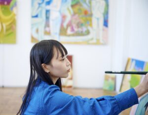 N&A Art SITEでは、2026年2月13日(金)から3月7日(土)まで、NANJO SELECTION 第8弾としてフカミエリの個展『夢は魚のようにはねている』を開催いたします。 ■開催概要 展覧会名:NANJO SELECTION vol. 8 フカミエリ『夢は魚のようにはねている』 会期:2026年2月13日(金) - 3月7日(土) 12:00-17:00 (日)(月)休 会場:N&A Art SITE(東京都目黒区上目黒1-11-6 / 東急東横線中目黒駅より徒歩5分) 主催:エヌ・アンド・エー株式会社、アートジーン合同会社 フカミは自分と世界における「こころの在りか」を起点に絵画表現を行う作家です。描かれる人や生き物、自然などを思わせる形は、記憶や夢、感情を映すように描かれ、平面に広がる豊かな色彩の揺らぎとともに現れては溶け合います。 その制作はさまざまな場で発表され、2024年には美術館に作品が収蔵されるなど、着実な展開を見せています。本展では、フカミが近年取り組んできた作品に加え、東京藝術大学大学院油画第6研究室に在籍し、修了を間近に控える現在の制作にも焦点を当てます。 見えないけれど、この世界にあるかもしれない。そのような世界を、あらためて絵画の中で見つめる機会となるでしょう。 ※出展作品のうち一部は会場での申込にて販売しております。メール等での申込は承っておりません。 ※プライスリストは会場のみでのご確認をお願いいたします。 ■作家ステートメント 小さいころ、山の近くで育った。 坂道が多くて、どこへ行くにも車がないと不便な町だった。 夏になると、近くのジャスコで毎週日曜日、 カブトムシの幼虫が水あめの容器に入れられて配られた。 私はそれを宝物をもつように抱えて帰った。 ベランダに出ると午後の光がまぶしくて、ブラスチックの蓋が白く光っていた。 その大きなプラケースに飼育用の土を入れ、幼虫をそっと埋めた。 次の日も、つぎのひも、幼虫はいつも土の中に潜っていてとてもつまらなかった。 カブトムシ見たいなあっと土を掘ったり、いじくったりしていたら 「蛹になってるかもしれないから、やめようね」と母にちくりと言われた。 朝よりも昼、昼よりも夜、寝る前にずっと気持ち悪いけどかわいいあいつが気になって、 とうとう我慢できなくなって次の日曜日車を出してもらいジャスコに向かった。 朝の子供たちが並ぶ列で、大人のおじさんが容器を1つ1つ手渡ししている。 番が待ち切れなくて、列の紐を触ったり、ポールを蹴ったりしながら遊んだ。 私の番になって、壊れないようにそっと受け取り、手にぬくもりを感じながらその場を離れた。 小さな動きまで見える様に目を凝らすと、ところどころ小さなシワが寄っていてその肌にびっしり並ぶ 黒い点々が不思議に思えた。図書館で調べてみると、その黒い点々は「気門」と呼ばれる呼吸のための器官だった。こんな小さな身体の中にも、ちゃんと息づく世界があるんだと思った記憶がある。 気づけば、幼虫は12匹になっていて、ブラスチックの容器も2個に増えていた。 西陽が差し込むべランダで透明な蓋が金色に光っていた。 小さな世界が、そこに静かに呼吸していた。 あの頃見ていた山はとても大きかった。 登ってみると、山は土でできていて土は砂で出来ていた。 大きなものも結局は小さなものの集まりなんだ。そう気づいた時、 世界の見え方が少し変わったような気がした。 テレピンを出して絵の具を混ぜているとき、世界の始まりを少しだけ思い出すような気がする。 粘土をこねるように、ナイフで他を作って、それを大きい刷毛で馴染ませる。 真っ白いキャンバスに薄めた絵の具をザパッとかけると、地の色と重なった膜が生き物みたいな形に見える。 淡く溶けたところ、くっきりと残った境目、その間にできる呼吸のような揺らぎ。 そこにまた別の色を重ねてみる。 色が重なって、透明な場所、濃い場所、ぼやけた場所、 その全部の奥行きを見ながらどこが手前でどこが遠くなのかじっと見つめる。 曖味な世界の中に、人や生き物や自然を線で描いていく。 気づけば、あの子供のころに見ていた山が近づいたり遠ざかったりしていている。 その揺らぎを、記憶の奥から筆の先へと手渡すように線を引く。 描いていると、絵の中の誰かがふとこちらを見て「もうここまででいいよ」と囁くように感じる。 この声を受け取って、筆を止める。 少し離れて絵を眺めると、絵はもう自分よりもずっと強い光を持って立っていた。 「この世界はどんな世界なんだろう」 土が姿形を変えても、元は別の何かだったように、 私も人の姿形をしているけれど、色んな存在の続きを生きている。 見えないけれど、この世界にあるかもしれない。 大きいかもしれないし小さいかもしれない世界をキャンバスの中で探している。 フカミエリ ■NANJO SELECTIONについて 長年、現代美術の普及に尽力し、その間多くの作家、作品に出会ってきましたが、それでもまだ新しい発見を求めて、内外多数の展覧会を見て歩いています。そして多くの作品に出会い、作家との対